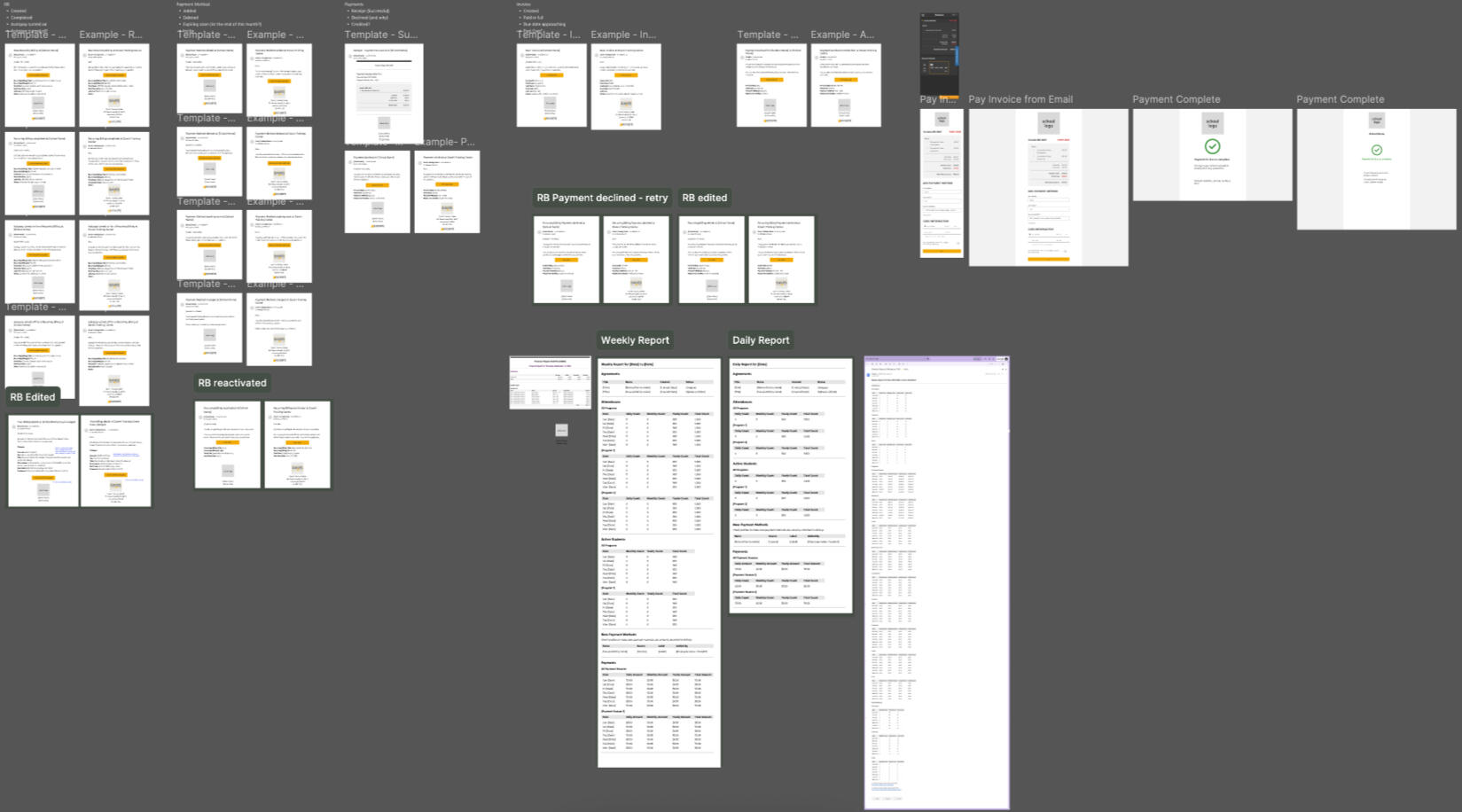 Some of the Recurring Billing workflows as mockups in Figma. This was pre Auto-Layout and pre setting up components, so I was doing way more tedious work than necessary!