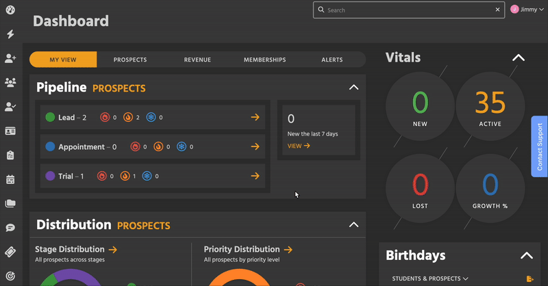 The Dashboard received two new modules to accompany the improved Prospect List. Clicking on a Priority icon filters you to only the Prospects in that Stage of that Priority, for example